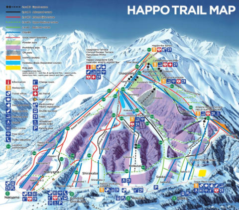 THE RESORT IN DETAILThere are 4 main access points to Happo, starting at the left looking up the mountain in the following order:•Nakiyama-plentyoffreeparkingandthisiswheremostofthefreeshuttlebusescome.Hasthenightskiing and also the new “Snowland” kids area serviced by covered dome escalator.•Gondolaarea-popularonthosecoldorwetdays.Verylimitedparking(allpaid)andifyouwanttocomeall the way down you will have to be at least a lower intermediate. •Kokusaiarea.ClosestaccessfromTokyuhotelandthatarea.Steep,moguledslopedownsoyouwillwantto make sure you catch the Kokusai 1 lift down unless you are a pro.•Sakka area. Most beginner friendly area at Happo and easy access from many accommodations in Wadano.BEST GROOMERS•Riesen course.Beginning at the top of the gondola this 3km long course clings to the fall line and offers a challenging 600 mtr descent suitable for lower intermediates +. Catch the fast Riesen Quad lift to knock off a few repeat runs in no time. •Central course . Beginning and ending at the gondola. This long course has a very steep section in the middle but this can be avoided by taking the cat track on the right. Suitable for upper intermediates & above. BEST POWDERBestoncoursepowdertobehadisontheOmusubicourse-thebigfaceonyourrightasyouexitthegondola withtheavalanchegatesonitwhichyouaccessfromtheskylinecourse.Thisopenedforthefirsttimein 2018/19.Nextbestwouldbetheskylineridge(Urakurocourse)accessablefromtheleftoftheKurobishipairlift no 3. Newly opened in 2019/20 is the Tenbo powder area accessable from the Alpen quad lift. KIDDIE’S AREAThereare2areas,oneisatthebottomofNakiyamacalled“NakiyamaSnowland”whichhasacovereddome escalatorperfectforlearningtoski,andforsleds.TheotherisintheSakkaregionwheretheyhaveachildren’s parkcompletewithtubingcoursesandtrampolines.Thisisalsowherethebeginner’sareaislocated.Thereis alsoanindoorkidsspaceattheUsagidairaareaatthetopofthegondola.Childcareisavailableat 5,000/10,000halfday/fulldayforkids1yr-9yrsoldand6,000/12,000ifyourlittleoneisnotyet1yrold. See this page for more details. HAPPO BACKCOUNTRYIssecondtononeinJapanbutyouneedtohaveyourownavigearandbesufficientlyexperiencedorgowithan accredited guide. See our backcountry page for more info. HAKUBA MOUNTAIN BEACHIfsnowisnotyourthingthenmaybejacuzzisandsaunasare?YouwillfindtheMountainBeachatthe Usagidaira area at the top of the gondola. PARKINGBestplacetoparkisintheNakiyamasection(allfree).Thereareseveralcarparksthere,andiftheyarefullyou canusetheSkiJumppark.Don’ttrytoparkinthegondolaarea,unlessyoudon’tmindpaying.Kokusaiand Sakka has free parking but very limited so best not worry unless you are an earlybird. PLACES TO EAT/DRINK/NIGHTLIFETherearemanyplacestoeatbothonthemountainduringlifthours(manyatthetopofthegondola)andalsooff themountain.Itisblessedwithmanybarsandrestaurantsdueinnosmallparttothemanyhotelsandlodges providing a steady flow of patrons.
